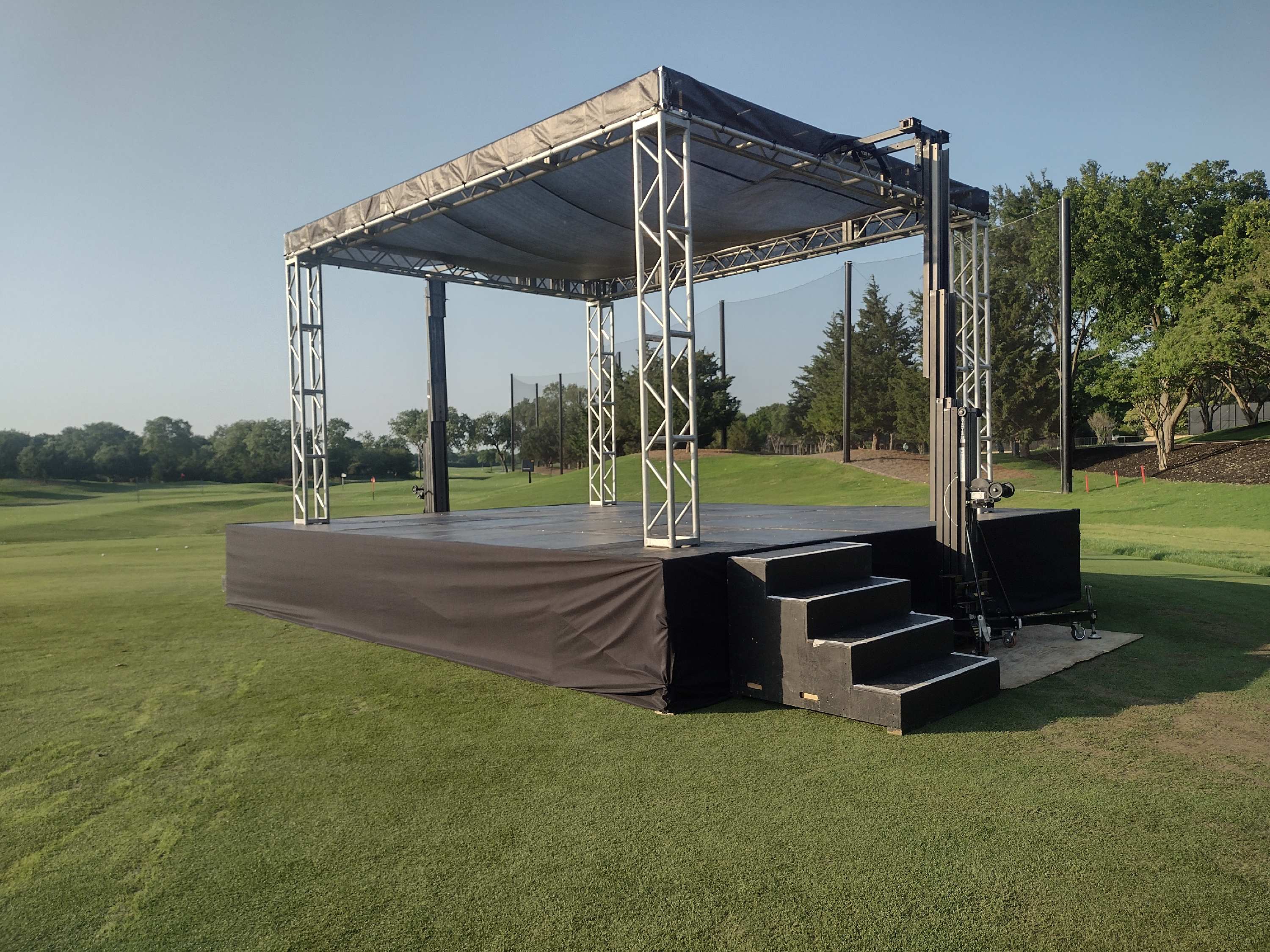 We build this type of stage in open outdoor spaces where the sun or rail will be a concern.