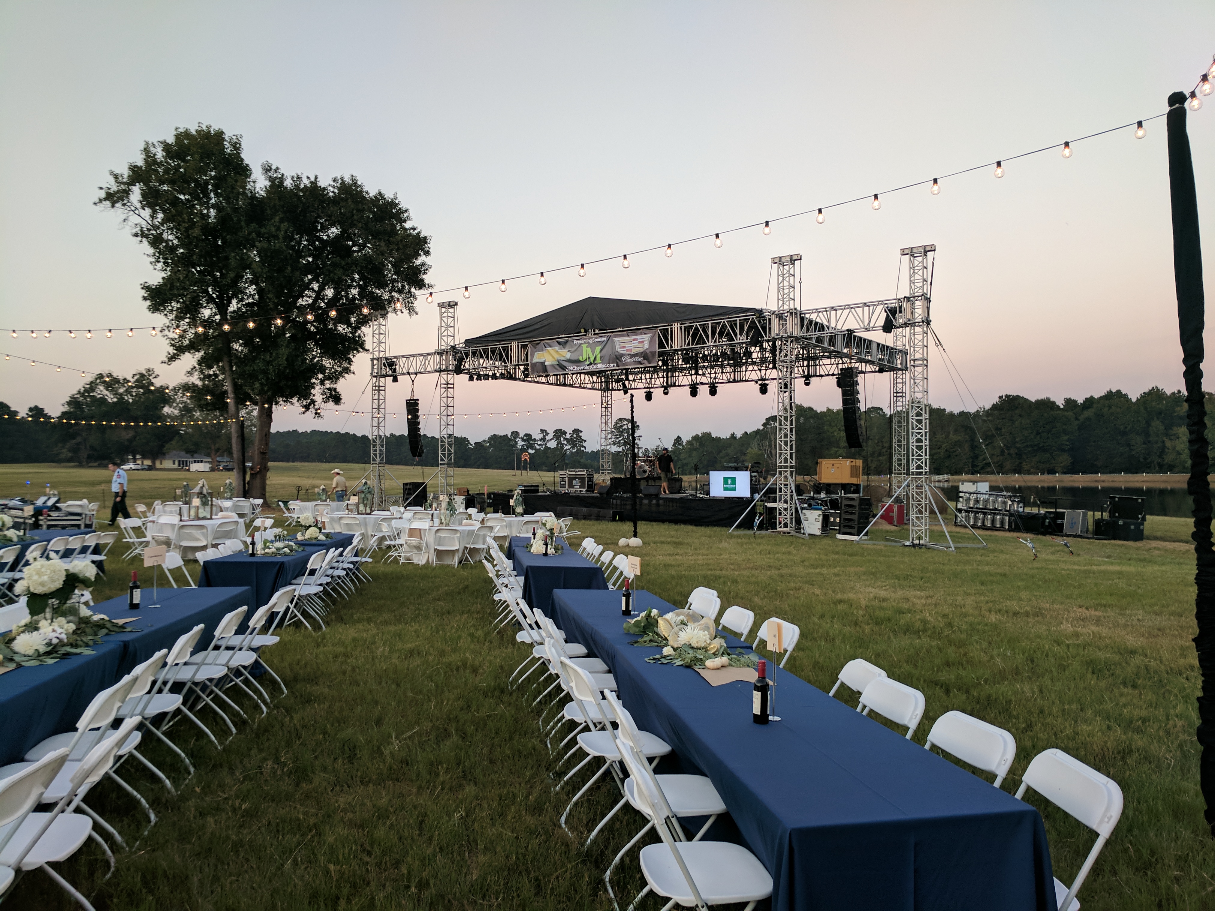 40x32 load bearing roof and stage rental with fly bays line array