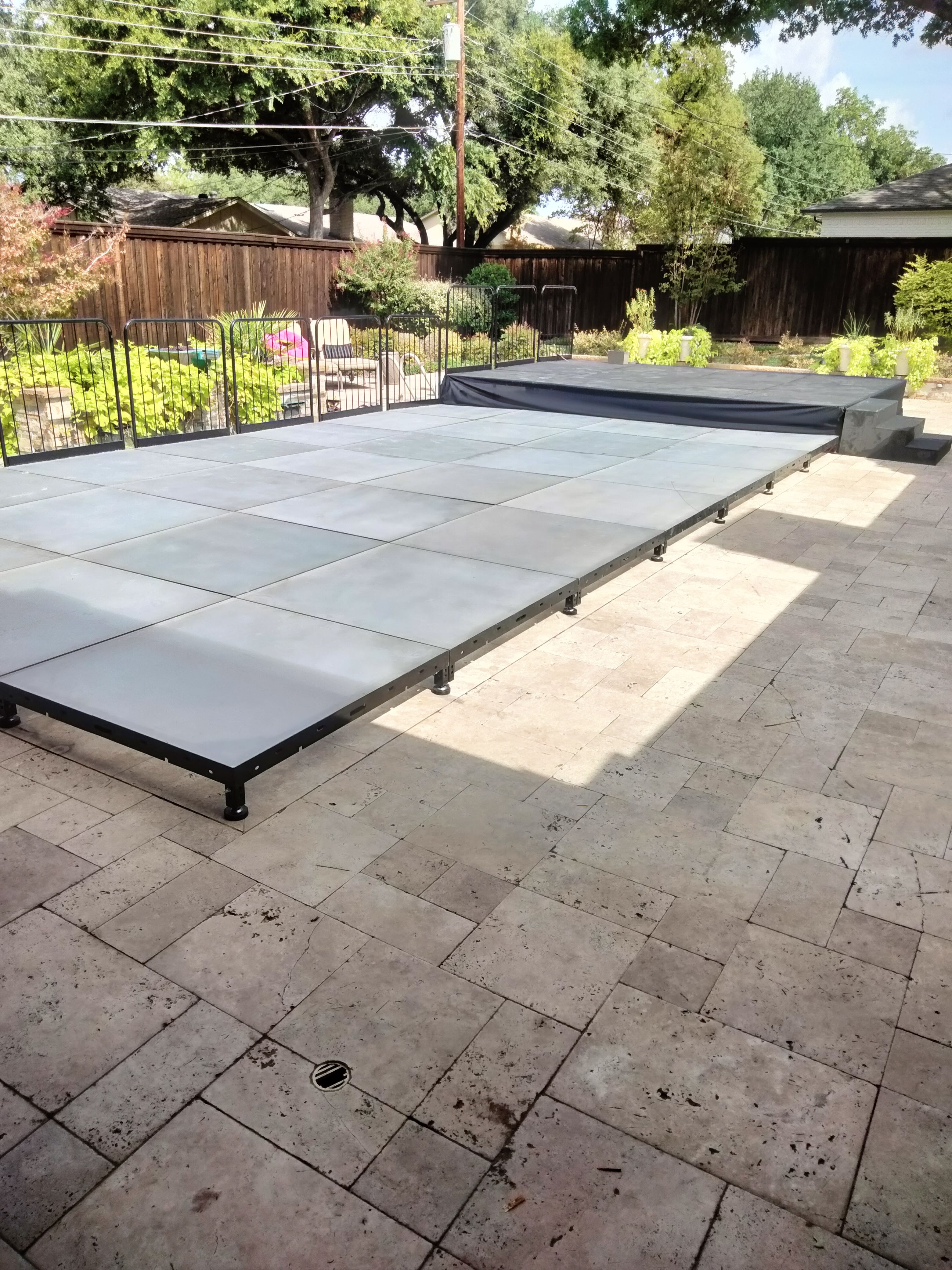 This rental consisted of a band stage with matching LED lit Frosted Acrylic Dance Floor over the swimming pool. The guests had a great time dancing just feet away from the performers.