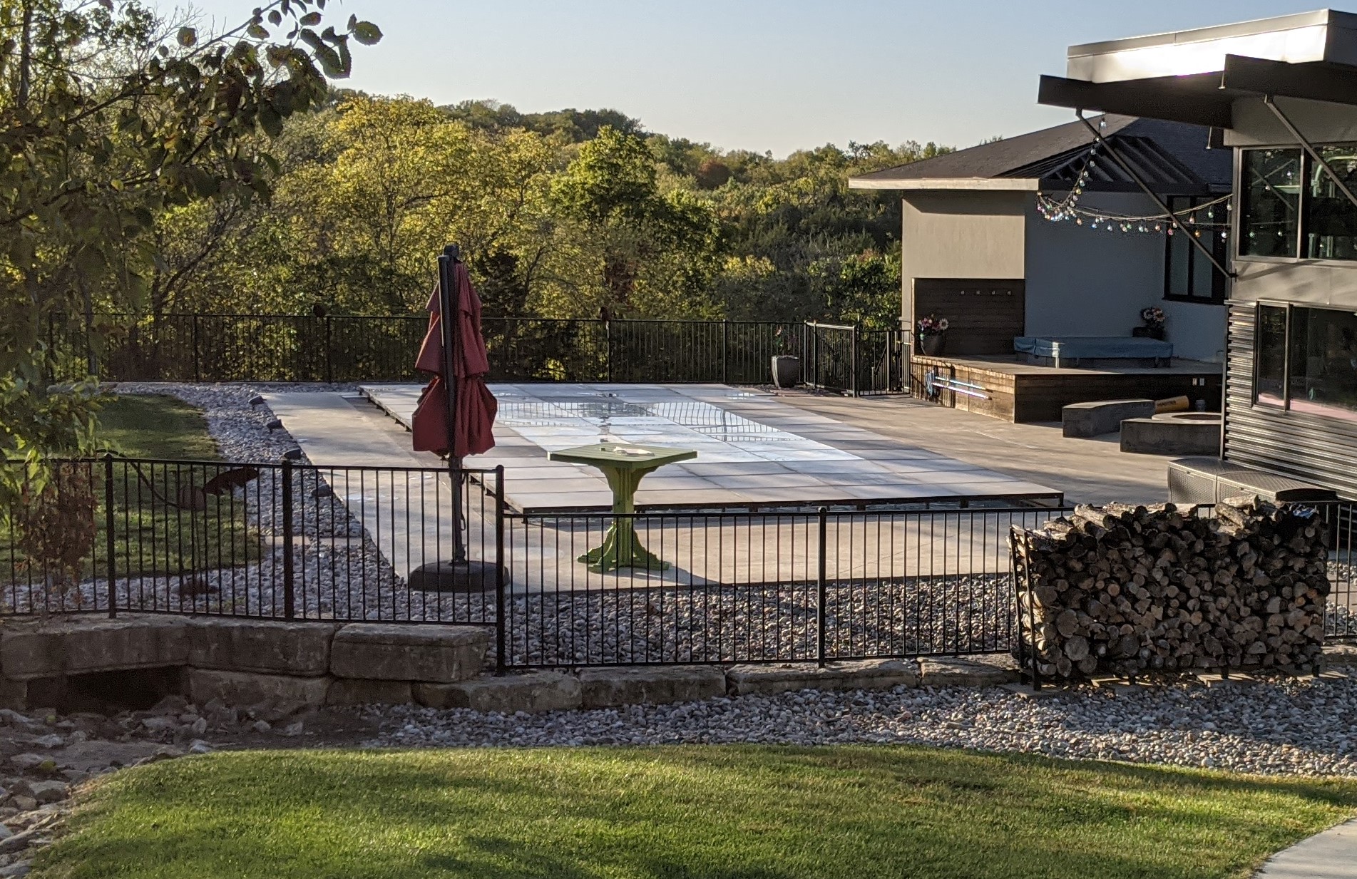 This pool cover is a multiple surface style utilizing both Frosted and Clear acrylic. At this angle you can clearly see the structural features.