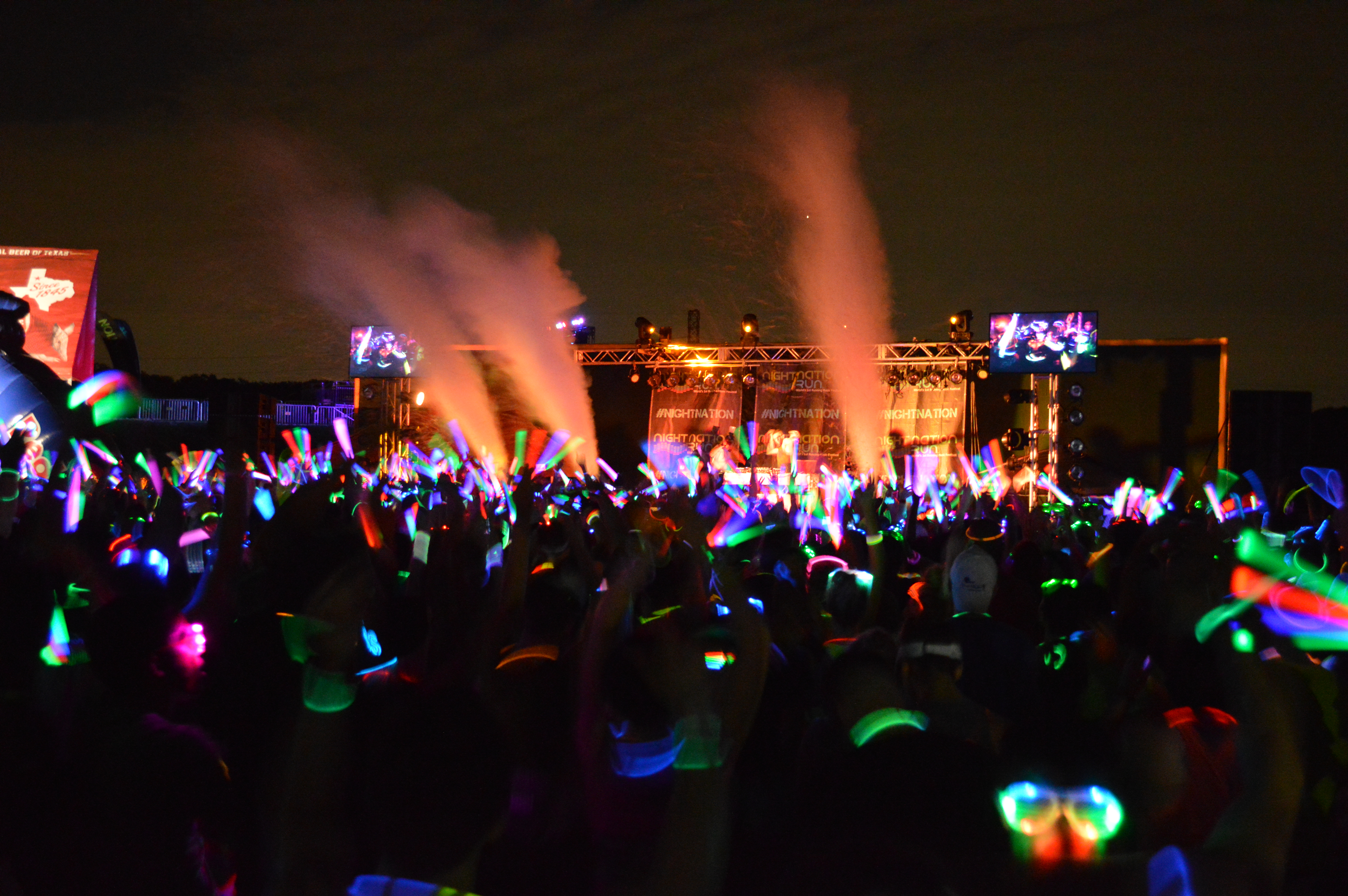 This EDM 5K pulled out all the stops! We used Cryo water cannons, confetti, video, lighting, and audio at this family-friendly live event to make sure the crowd had a great time! Organizing and planning long and short marathons is one thing. Adding open air concerts and special effects like intense black light reactive color or video services are even better!