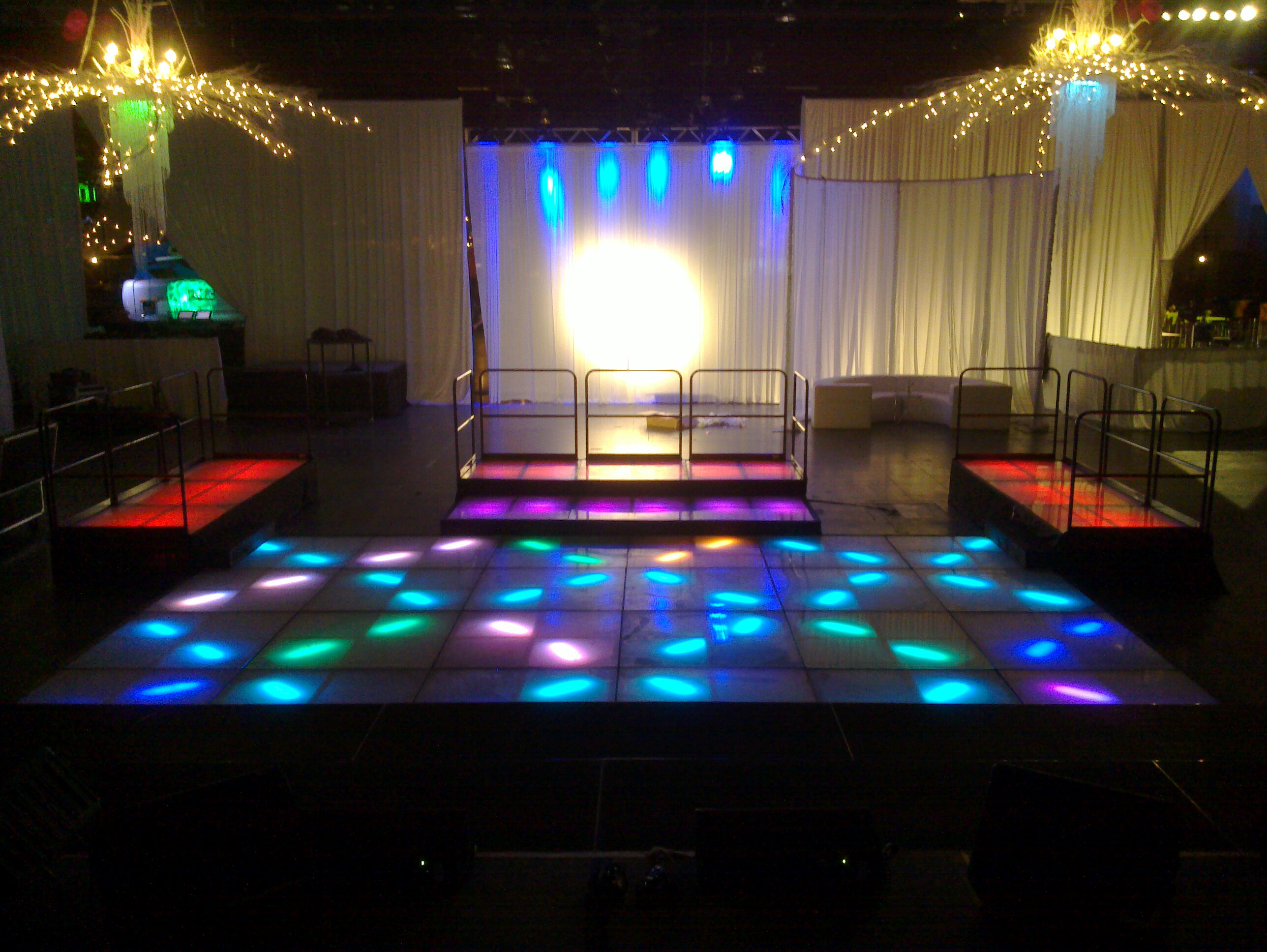 LED Dance floors with acrylic platforms and lights.