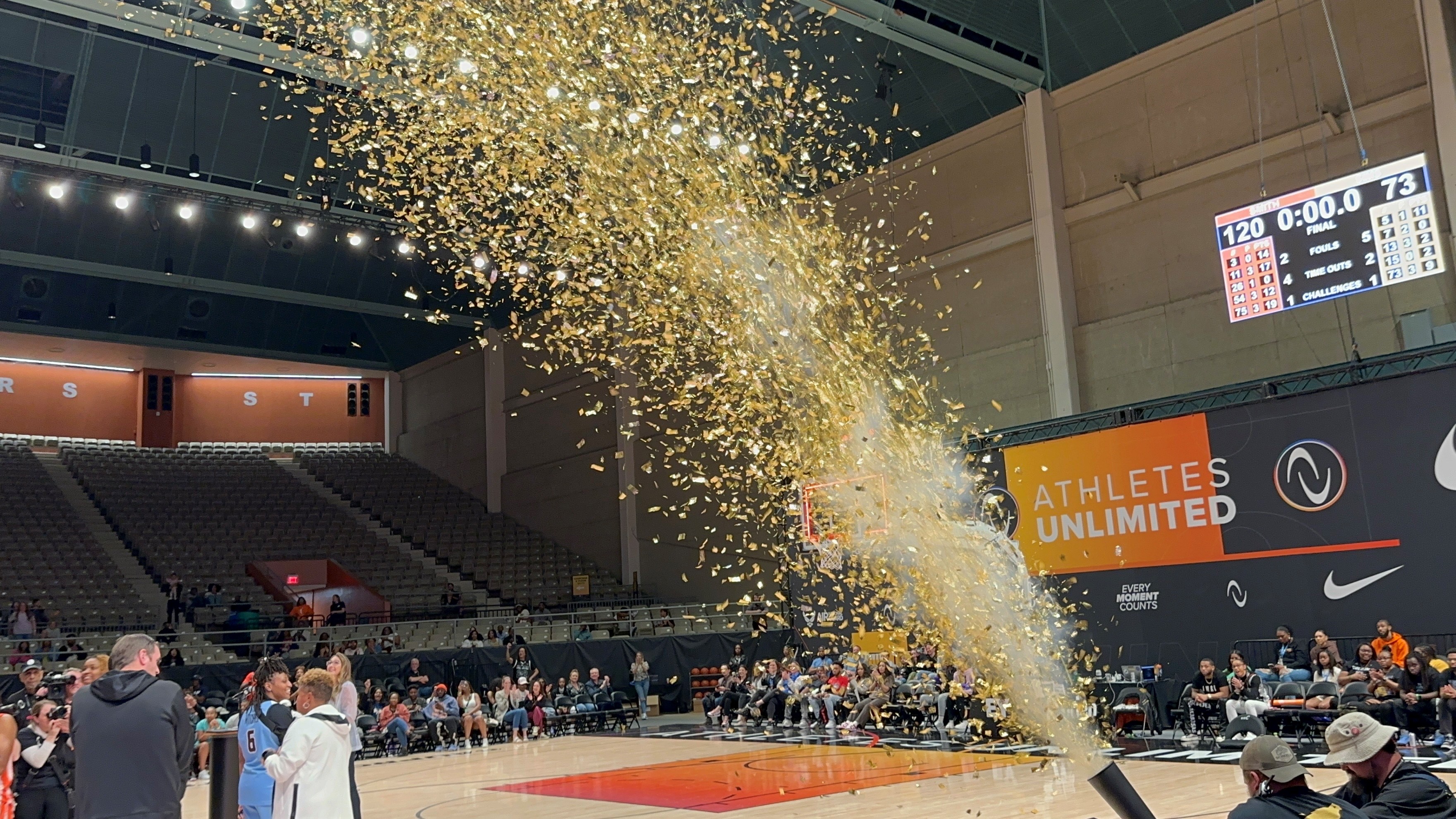 This confetti blower was loaded with gold mylar confetti for an awards ceremony at a sporting event. This unit uses CO2 to create a long lasting, brilliant effect!